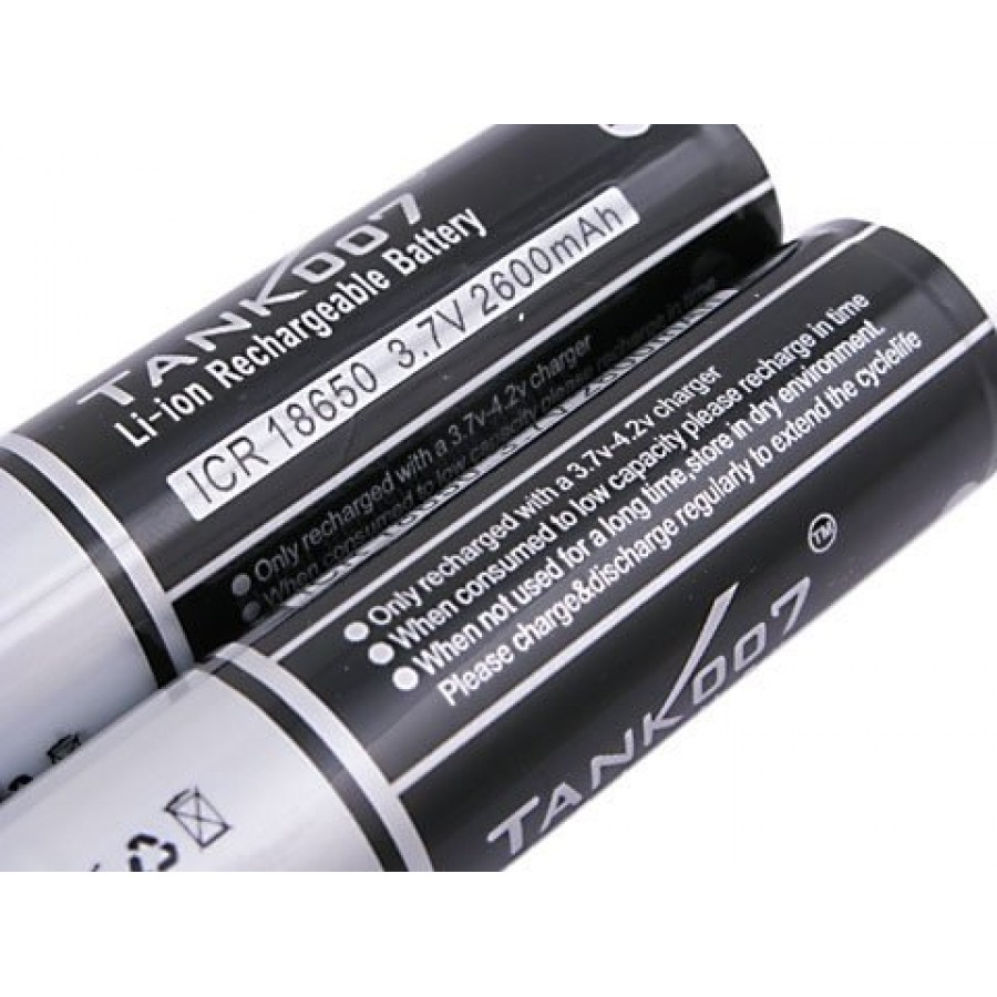 Высококачественный литий-ионный аккумулятор формата 18650. Реальная ёмкость 2600 милиампер часов. Подходит для всех фонарей TANK007, использующих эти аккумуляторы. Может применяться в светодиодных фонарях других производителей, а также в различных электронных устройствах, использующий данный типоразмер аккумулятора. Аккумулятор имеет встроенную защиту от перезаряда. Рабочий ресурс аккумулятора Tank007 18650 Li-ion не менее 500 циклов заряда - разряда.